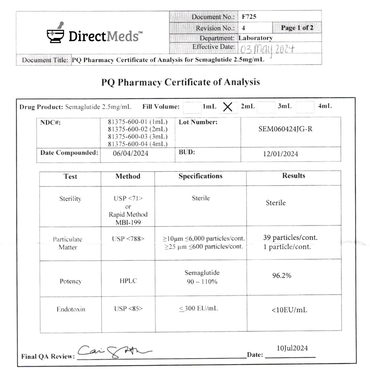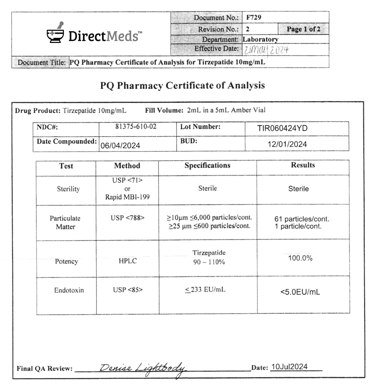 Medications prescribed through Direct Meds are dispensed by U.S.-based 503A compounding pharmacies. These pharmacies prepare medications individually in response to a prescription from a licensed healthcare provider and must follow applicable federal and state compounding regulations, as well as professional standards such as USP 795 and USP 797.